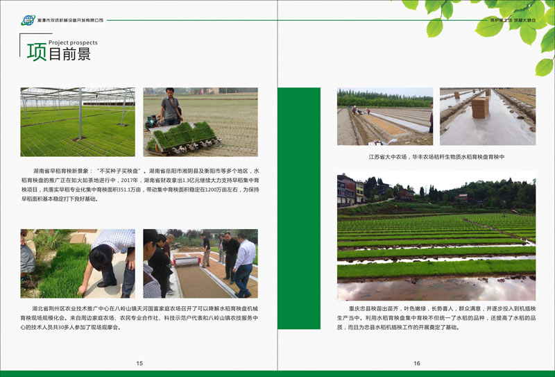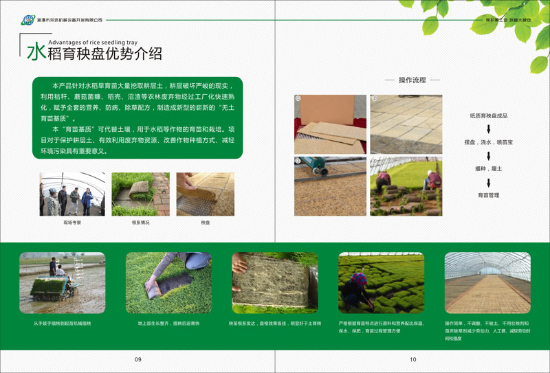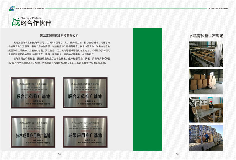 我司2012年應(yīng)黑龍江某企業(yè)誠邀,開發(fā)出秸稈生物質(zhì)水稻環(huán)保育秧盤生產(chǎn)機器,經(jīng)過公司全員的努力,于2014年成功的攻克了生物質(zhì)環(huán)保育秧盆批量生產(chǎn)的機器及工藝難題,目前已經(jīng)在黑龍江地區(qū)持續(xù)銷售多條大小生物質(zhì)育秧盤生產(chǎn)線。在2018年,與中國農(nóng)業(yè)大學農(nóng)學院及黑龍江國壤農(nóng)業(yè)科技有限公司達成戰(zhàn)略合作關(guān)系,就水稻育秧盤項目進行更深一步的合作與研發(fā)。