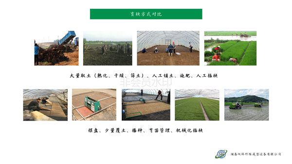 本產品針對水稻旱育苗大量挖取耕層土,耕層破壞嚴峻的現(xiàn)實,利用秸稈、蘑菇菌糠、稻殼、沼渣等農林廢棄物經過工廠化快速熟化,賦予全套的營養(yǎng)、防病、除草配方,制造成新型的嶄新的“無土育苗基質”。