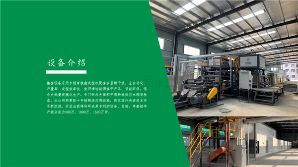 整套設備采用水稻育秧盤成型機配套多層烘干線,全自動化、產量高、成型效率快、使用清潔能源烘干產品、節(jié)能環(huán)保。適合大批量規(guī)?;a,專門針對大面積平原耕地供應水稻育秧盤。本公司積累數十年械制造應用經驗,吸收國外先進技術并不斷改進,目前,單臺按年產量分別為500萬及1000萬片。
