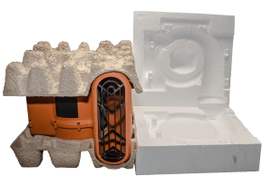 一、該產(chǎn)品以前用的是泡沫包裝。現(xiàn)在換成一種堅固、環(huán)保、經(jīng)濟、保護性強的紙漿(100%回收廢紙)模塑產(chǎn)品: