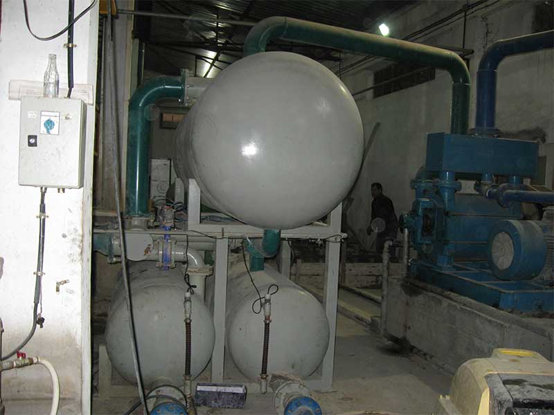 在真空的作用下主機(jī)模具從漿盆內(nèi)吸漿和脫水的過程中,汽水混合在一起通過主機(jī)的真空管道被輸送至負(fù)壓罐內(nèi),進(jìn)入罐體后的水在重力的作用下往下沉降至罐底部,空氣則在罐體的上部隨著真空管道進(jìn)入真空泵后排出,罐體下部的水被排液泵(自吸泵)輸送到回收水池內(nèi)再循環(huán)利用制漿和調(diào)漿。這樣的好處是:1水被分離出去后不會(huì)進(jìn)入真空泵內(nèi),能夠保證真空泵和電動(dòng)機(jī)平穩(wěn)的環(huán)境下運(yùn)行,從而保證設(shè)備的使用壽命。2生產(chǎn)線能夠得到較為穩(wěn)定的真空度和真空儲(chǔ)備。3回收的水可以被整條生產(chǎn)線循環(huán)再利用。